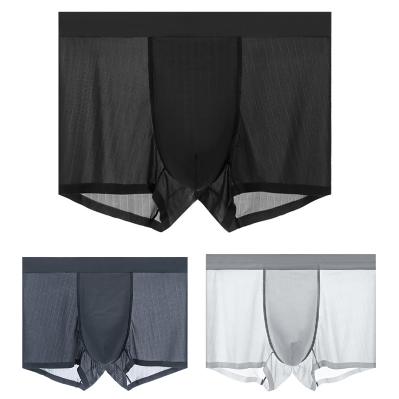Men's ice silk unscratched briefs Four corners pants ultra-thin cool and breathable personality transparent trendy summer four-corner shorts head
