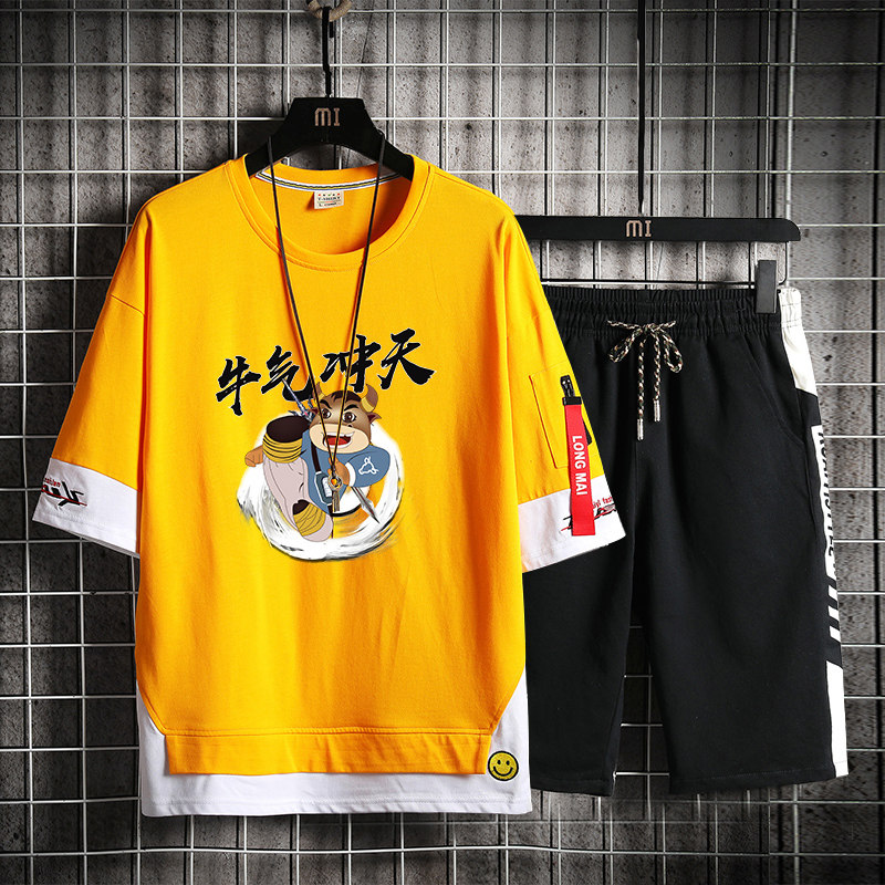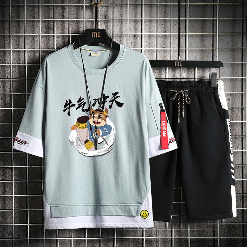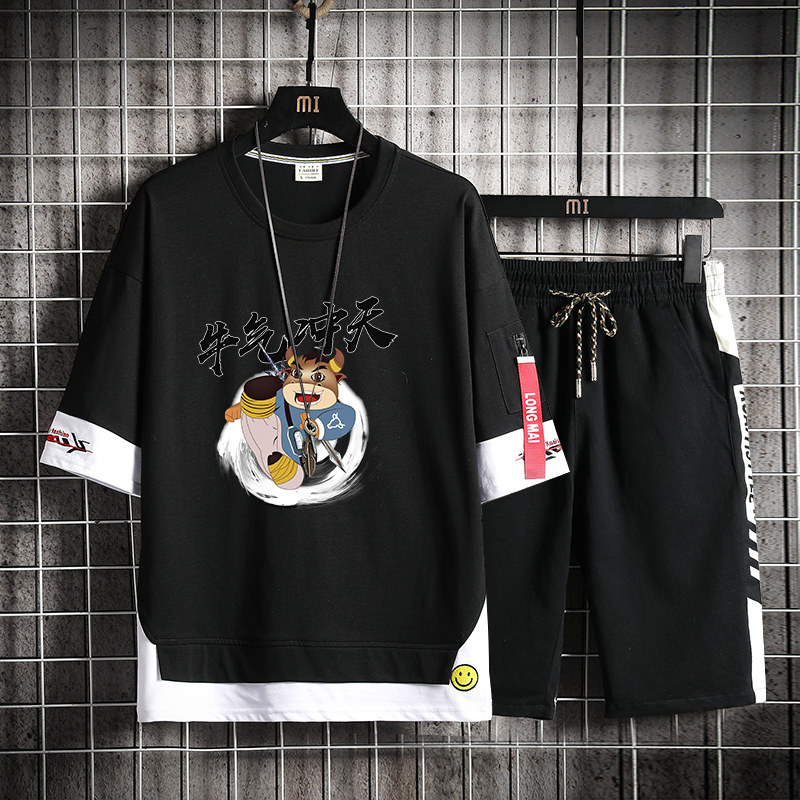 Teen Cow Rush Day Short Sleeve T-Shirt Boy Kids Trend Summer Dress Junior High School High School Student Men's Handsome Suit