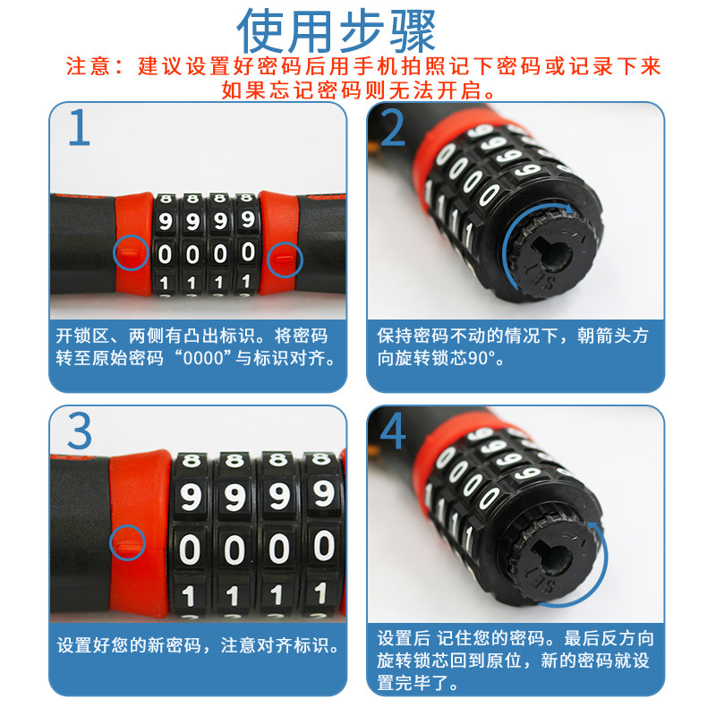 Bicycle anti-theft password chain lock mountain bike battery car electric car fixed bold iron chain lock portable