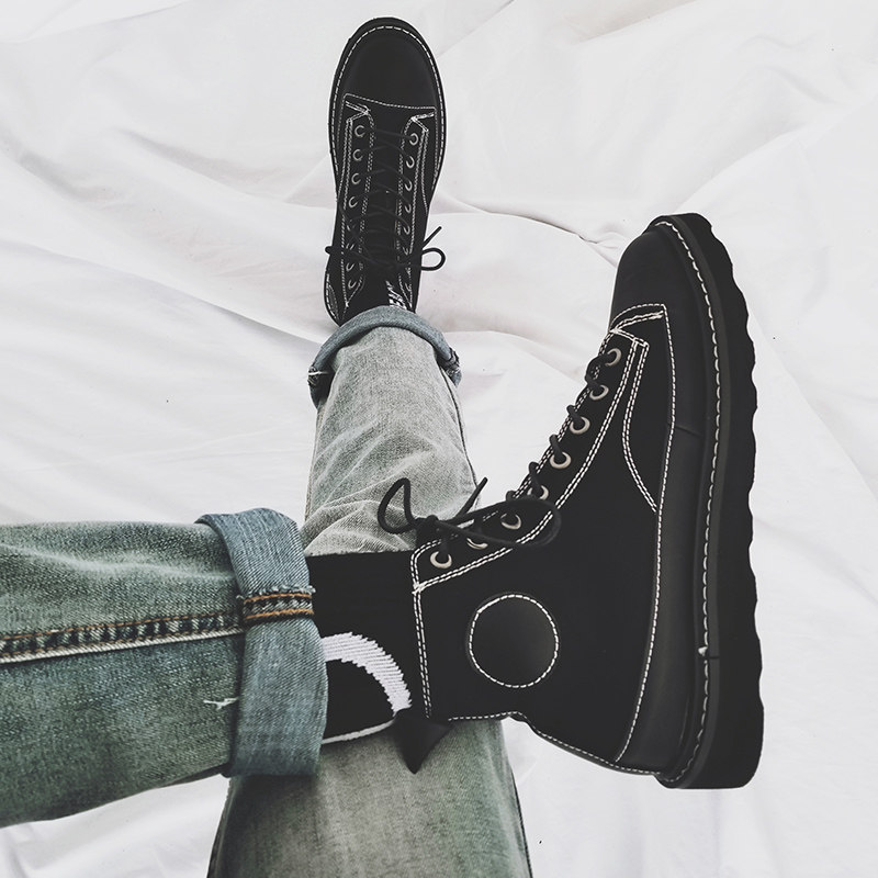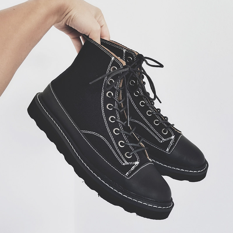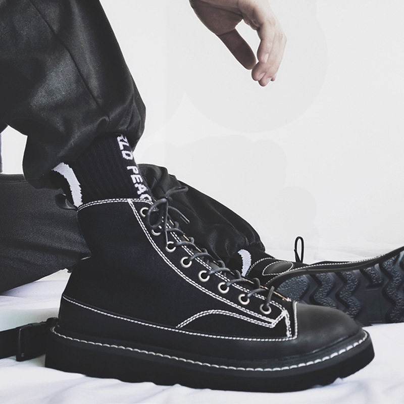 2022 new net red thick bottom high cylinder board shoe harbor wind pure Inron fan car Canvas Frock man Martin boots