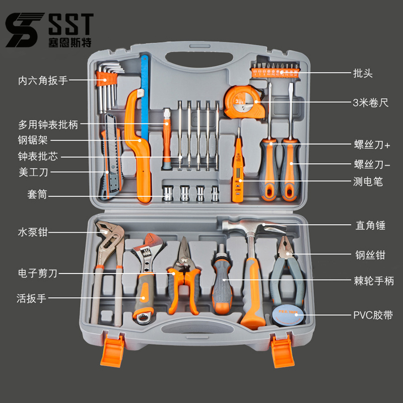 High-end practical household tool set manual hardware toolbox full set of tools nozzle pliers wrench hammer set