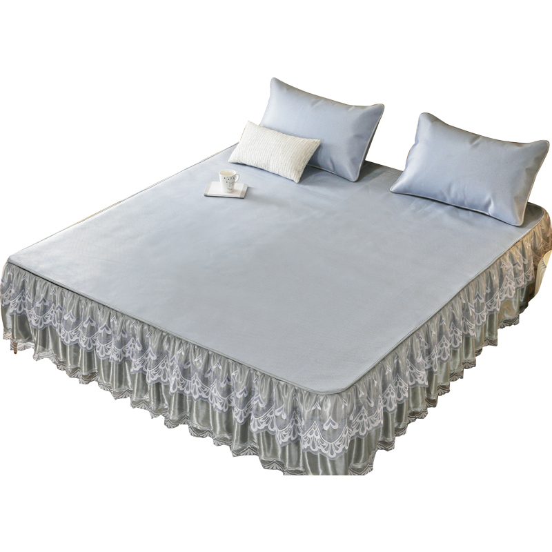 Summer Mat Rattan Mat Household Three-piece Folding Summer Double Ice Silk Mat Princess Lace Household Detachable