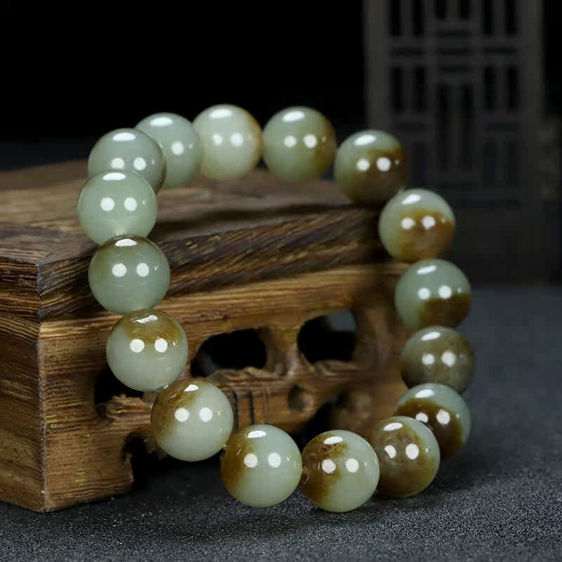 Xinjiang Hetian jade and the last material sugar jade hand chisel natural pretty color bracelet men and women style single circle bead hand chisel 42 38g