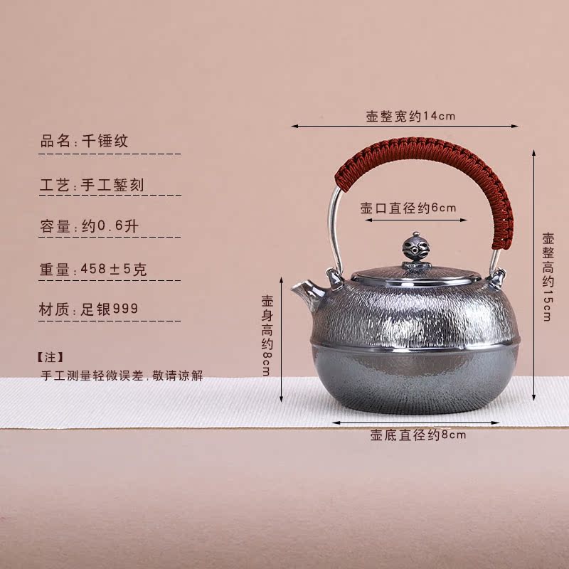 999 pure silver pot Hammer Veins Foot Silver Tea Set Hand Imitation Japan Silver Pot Burning Water Cooking Day Style Tea Wares 4 An Ginzhuang