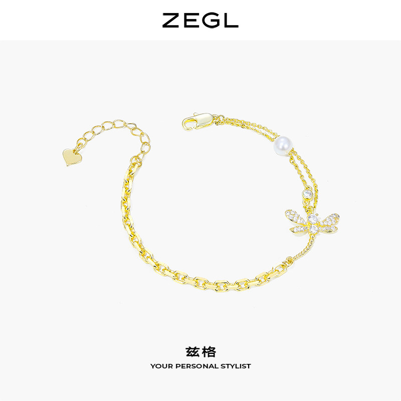 ZEGL designer faux pearl summer Dragonfly Bracelet girl ins niche design cold girlfriends hand ornaments