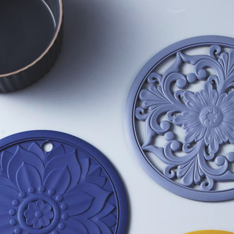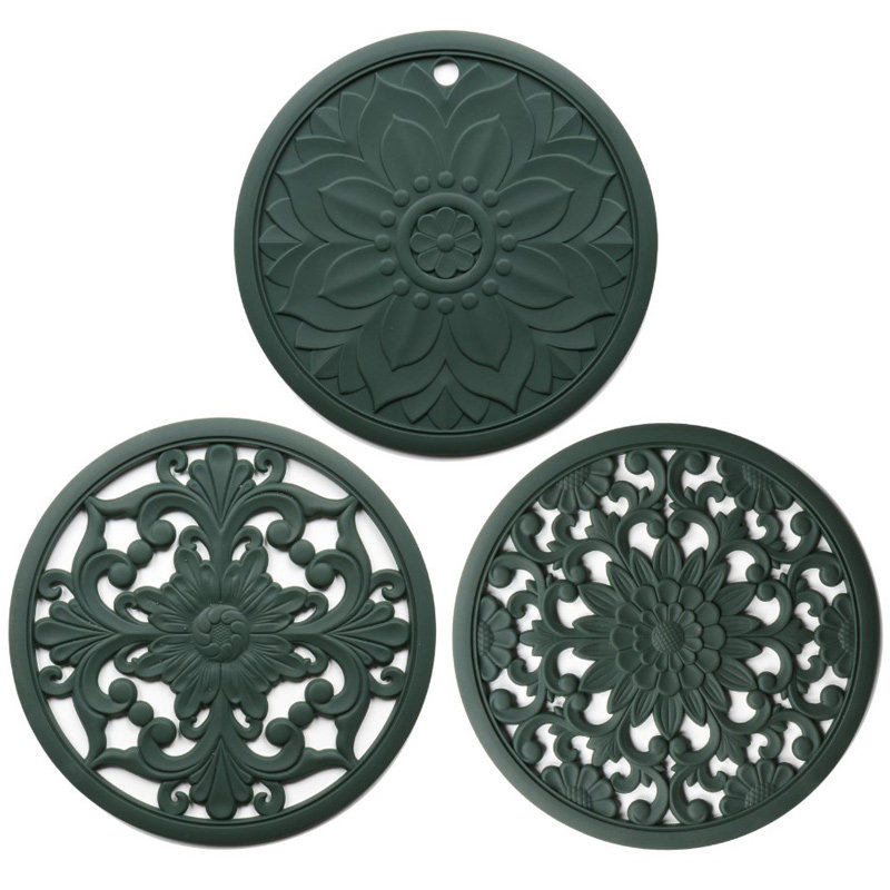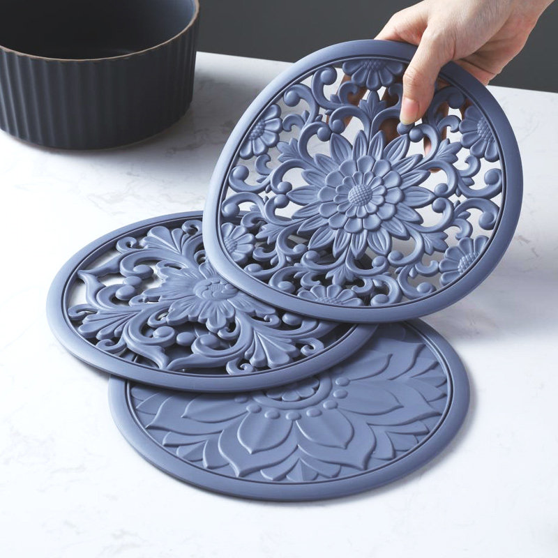 Classical flower hollow heat insulation mat high temperature resistant silicone pot mat vegetable mat table mat Chinese style anti-scald mat 3-piece set