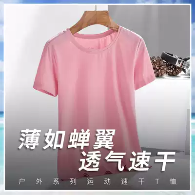 Summer ice silk quick-drying T-shirt elastic short-sleeved women's top loose and breathable sports quick-drying round neck T-shirt men