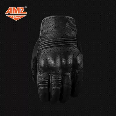 AMZ locomotive leather gloves retro locomotive Knight equipment imitation street car Summer breathable perforated anti-drop gloves