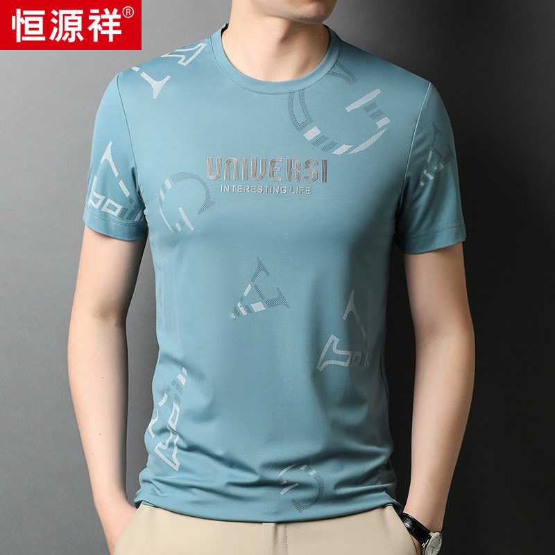 Hengyuan Xiang 2021 summer new item short-sleeved t-shirt men's loose top men's crew neck undershirt trend printing T-shirt