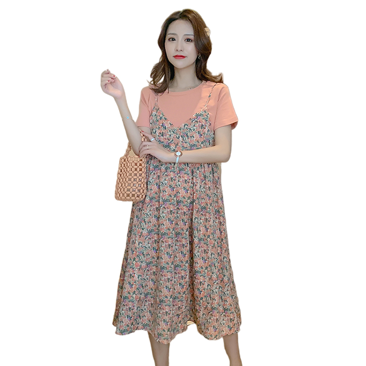 Maternity suit summer floral slip dress net red foreign atmosphere outside wearing fashionable two-piece set tide mom suspender dress