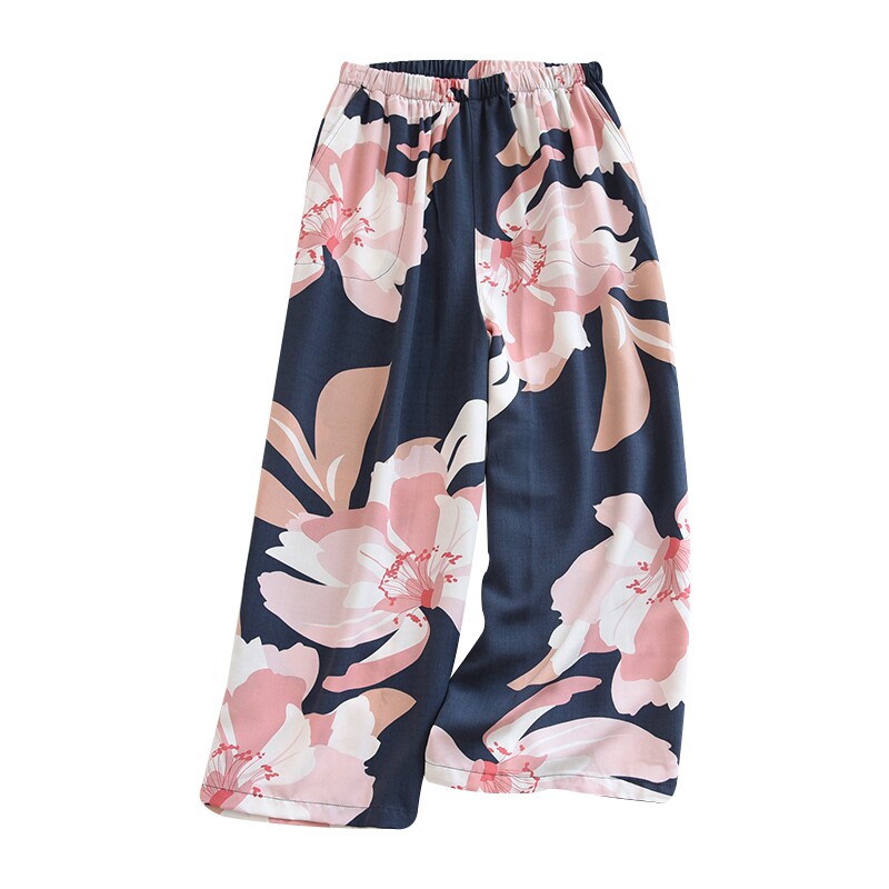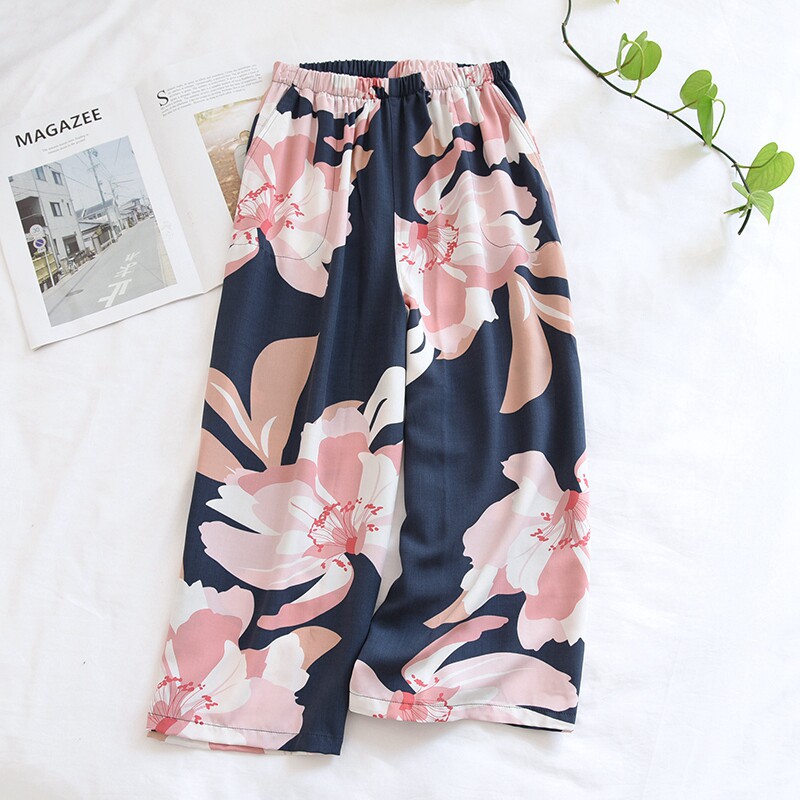 Sleeping Pants Woman Summer Thin payee Cotton cotton silk 7 Pants Artificial Cotton Loose Casual Air Conditioning Pants Home Pants Exterior Wear