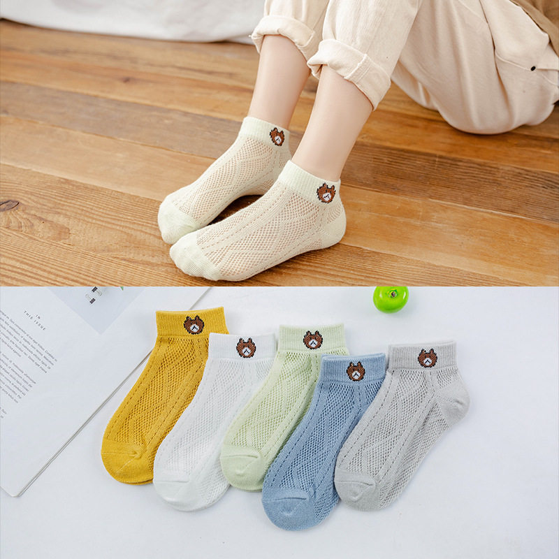 Children's socks cotton 7-9 years old elementary school girl thin summer boat socks 3-5 boys breathable mesh toddler