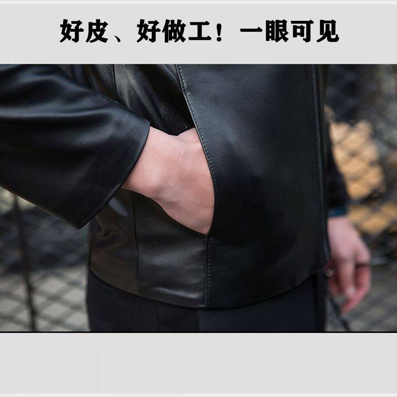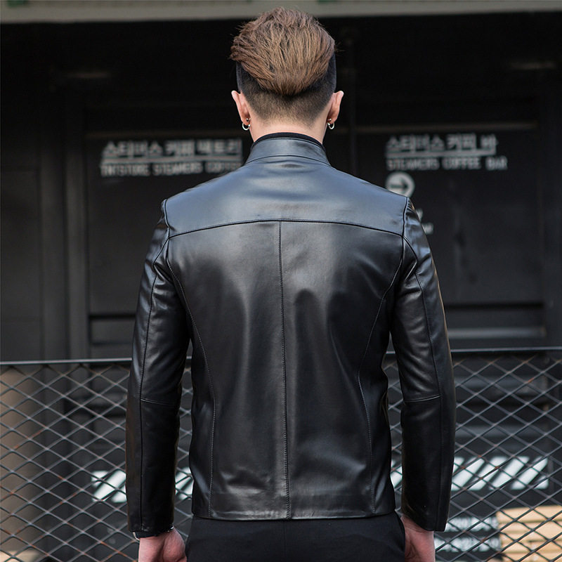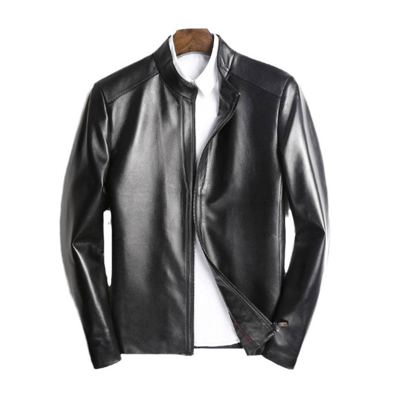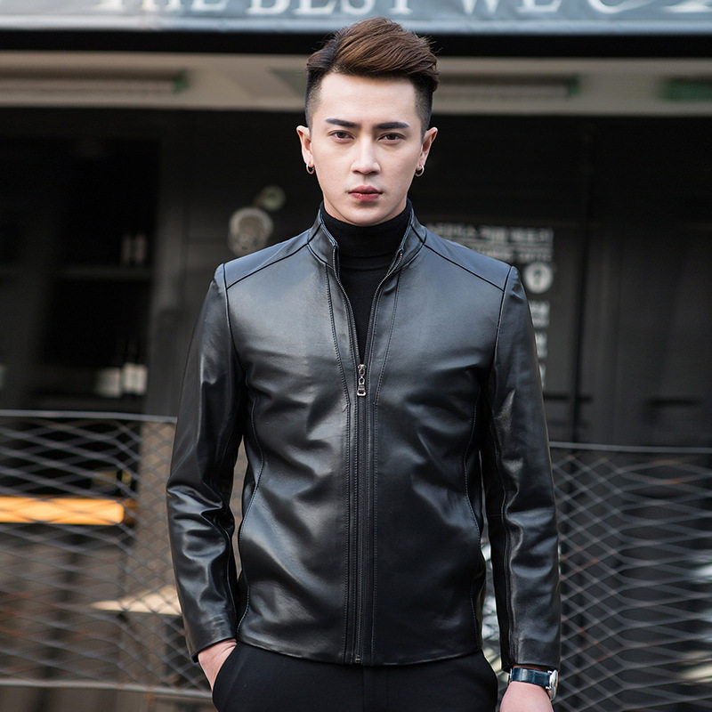 The first layer of sheepskin leather leather coat Men's small stand-up collar thin pure leather jacket slim casual trend spring and autumn jacket