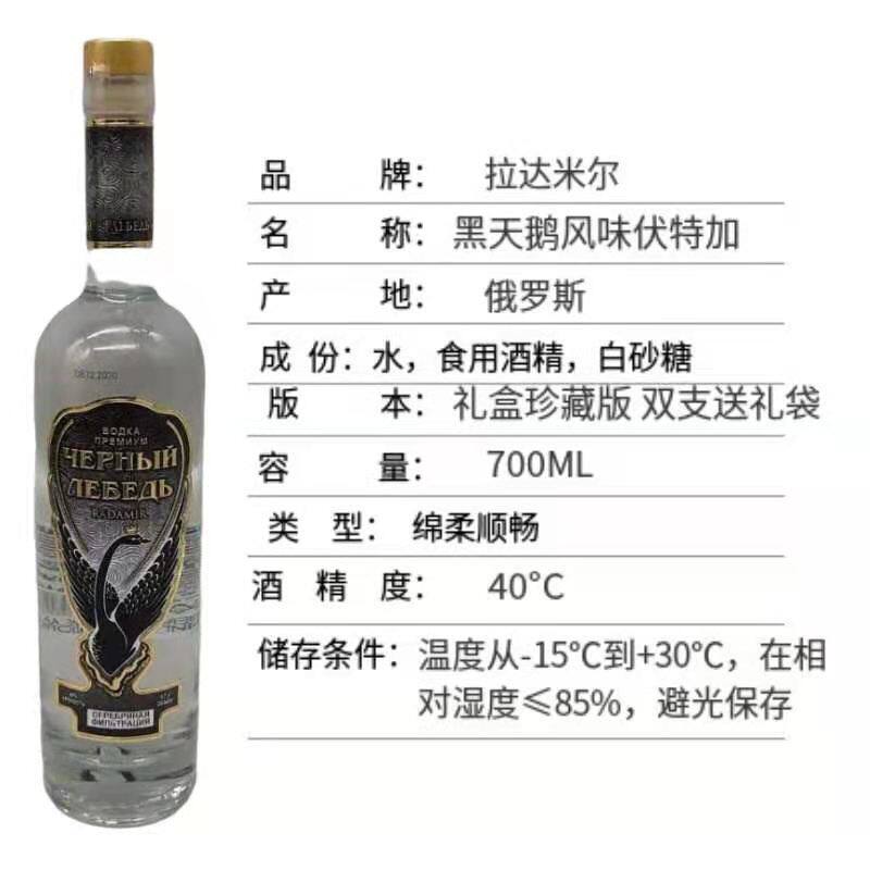 Vodka Russia imported black swan 40 degrees high-grade liquor vodka 700ml gift box gift