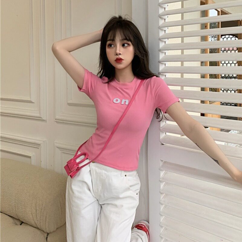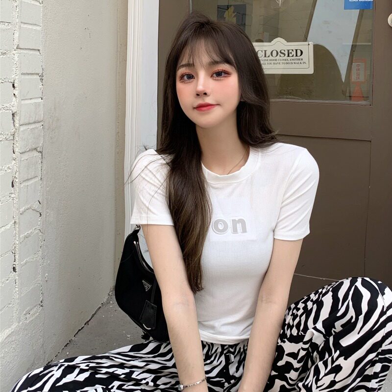 Fanya letter black short-sleeved T-shirt women's summer Korean version of the self-cultivation Western style all-match round neck short shoulder short top - Taobao
