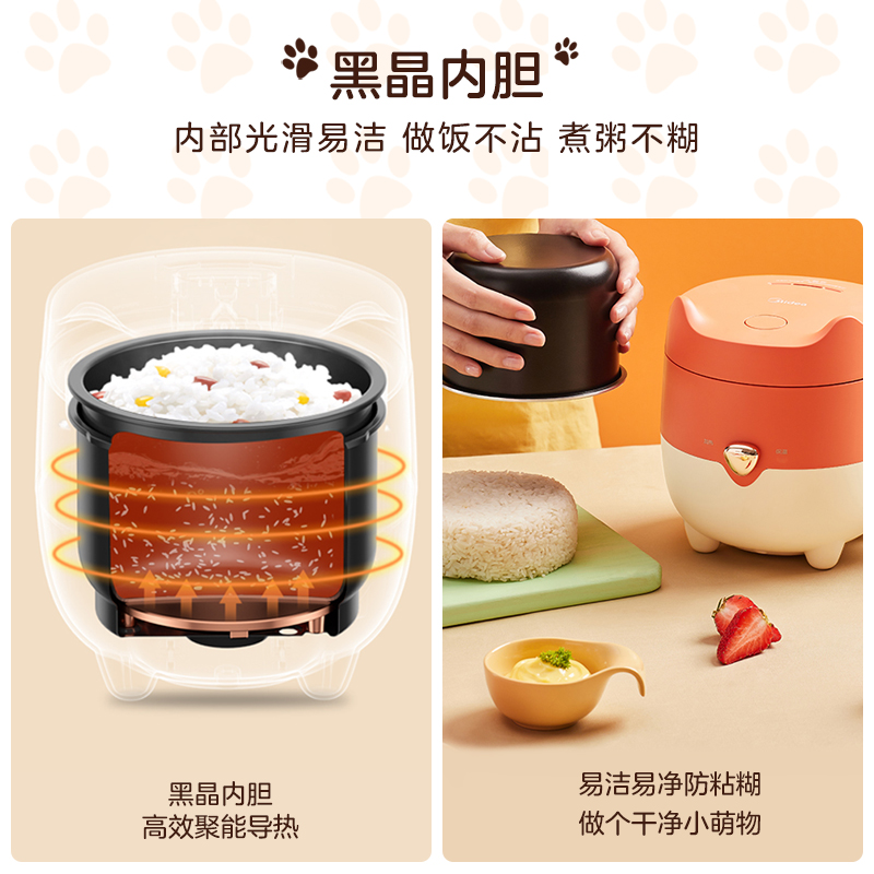 Midea rice cooker household small multi-function rice cooker dormitory 1-2 people mini small capacity rice cooker porridge pot