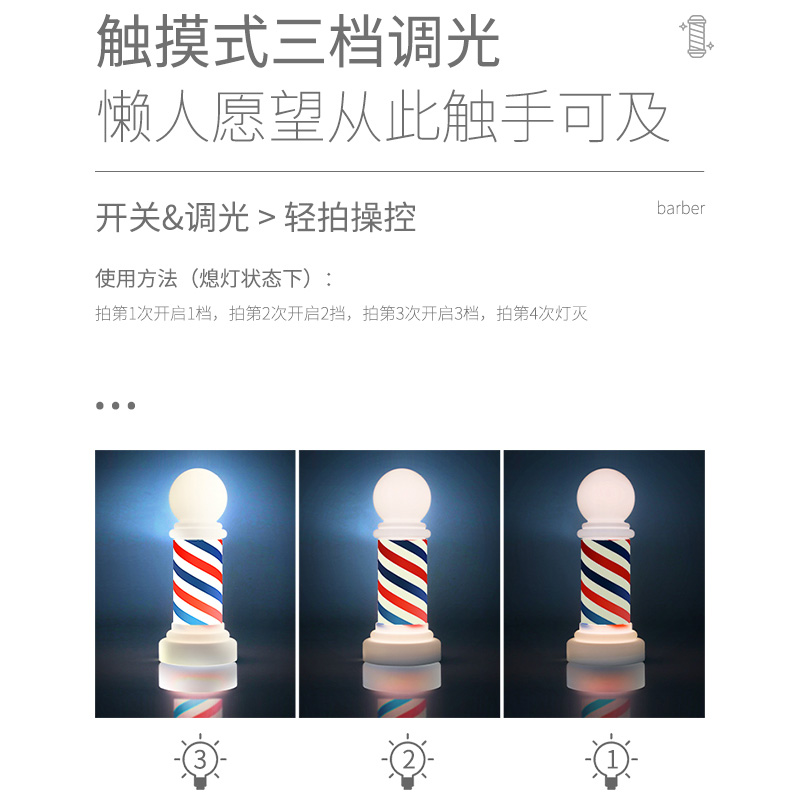 Barbershop turnaround gallery classic tri-color lamp hairdresser decorated small tablelight mini-barber lights