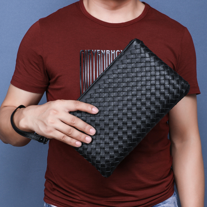 2021 summer new woven men's handbag genuine sheepskin clutch bag business casual soft leather clutch bag trend