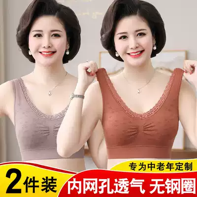 Mom underwear women's bra middle-aged and elderly vest-style large size women without steel rings elderly sports gathered thin bra