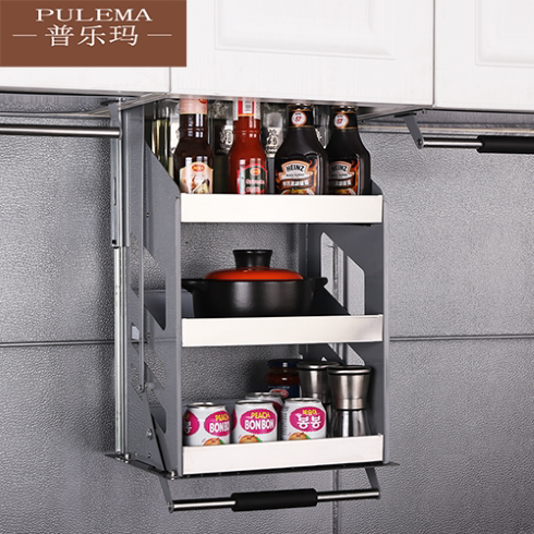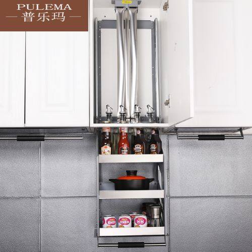 Stainless Steel Lifting Pull Basket Kitchenette Whole Cupboard Top Cabinet Top Cabinet Seasoned Basket Upside Down Cushion Flex Down Pull-out Seasoning Basket
