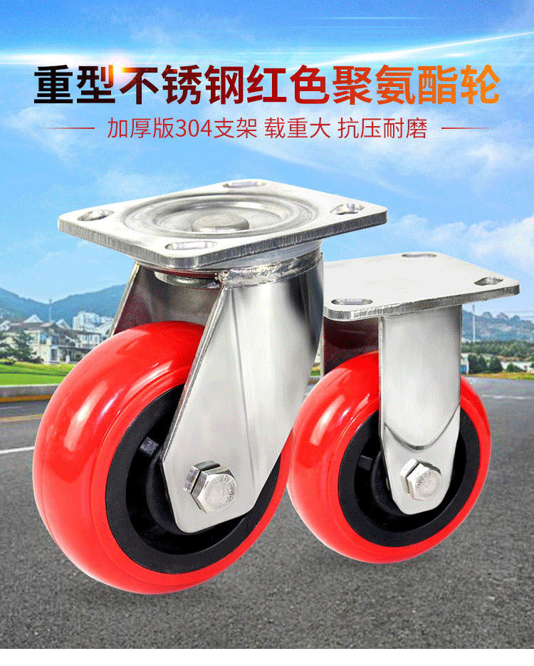 Thickened heavy-duty 304 stainless steel casters 4 inches 5 inches 6 inches 8 inches plastic heart Korean wheel load polyurethane wear-resistant wheel