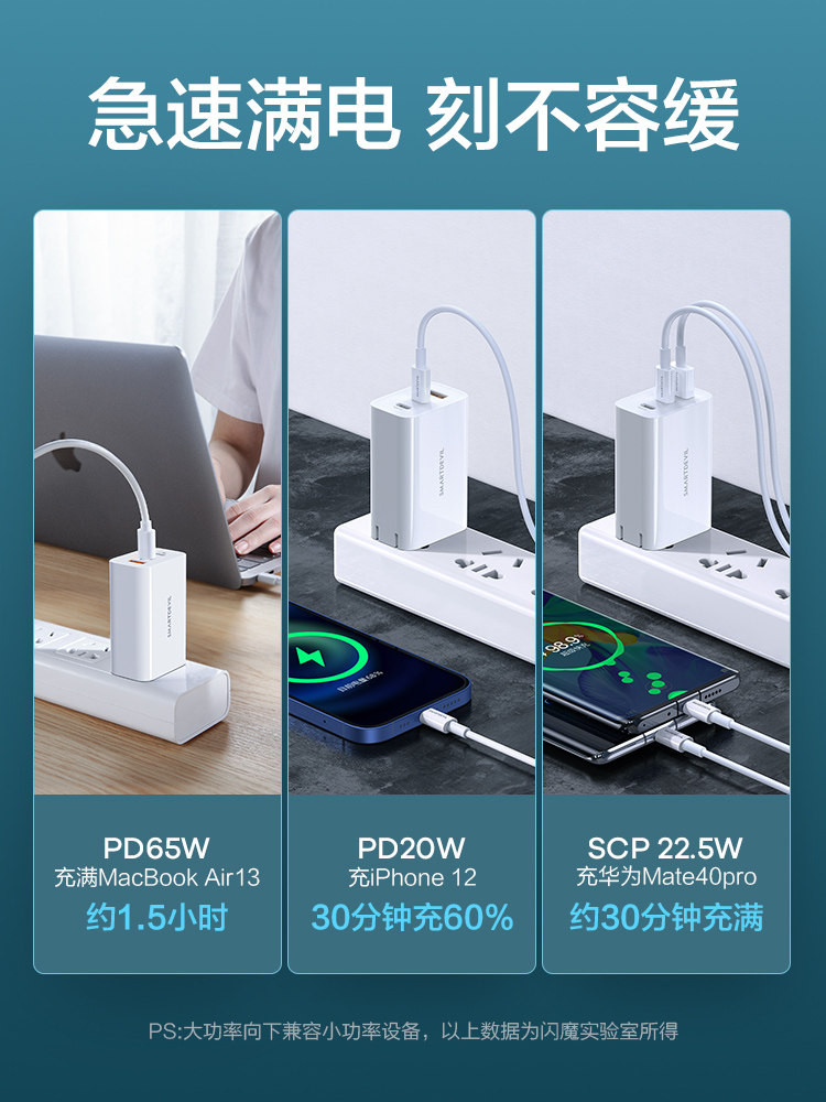 Flash Magic 65W gallium nitride charger head iPhone12pro Dokou Gran suitable for Apple PD Fast charging 20W Huawei super fast charging Xiaomi small new notebook macbook