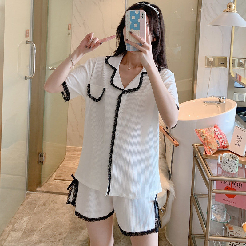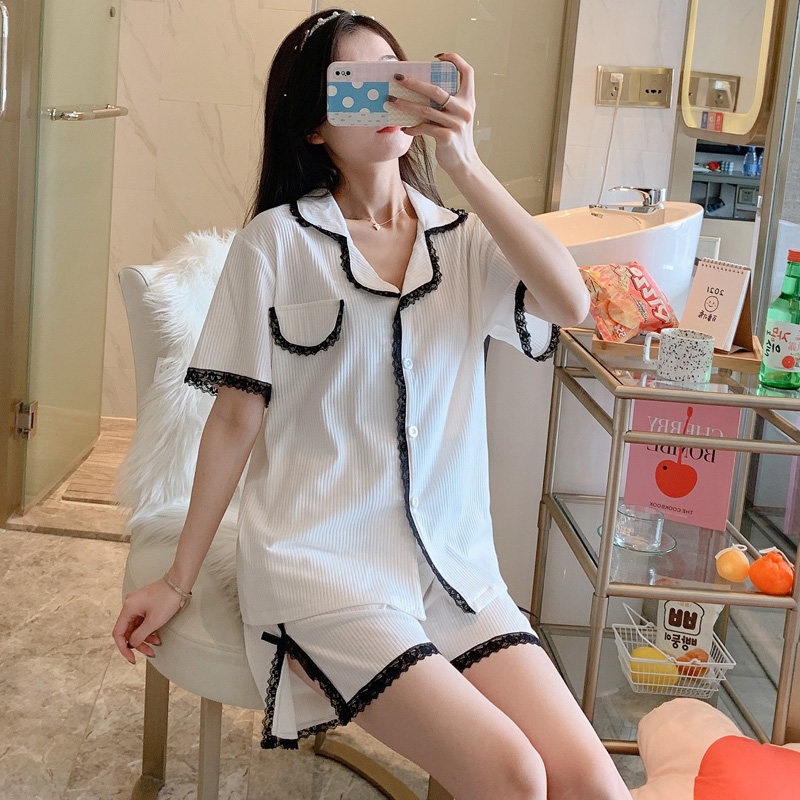 Angelina Zl Sleepwear Woman Summer Pure Cotton Short Sleeve Thin 2021 New adorable home dress Two sets
