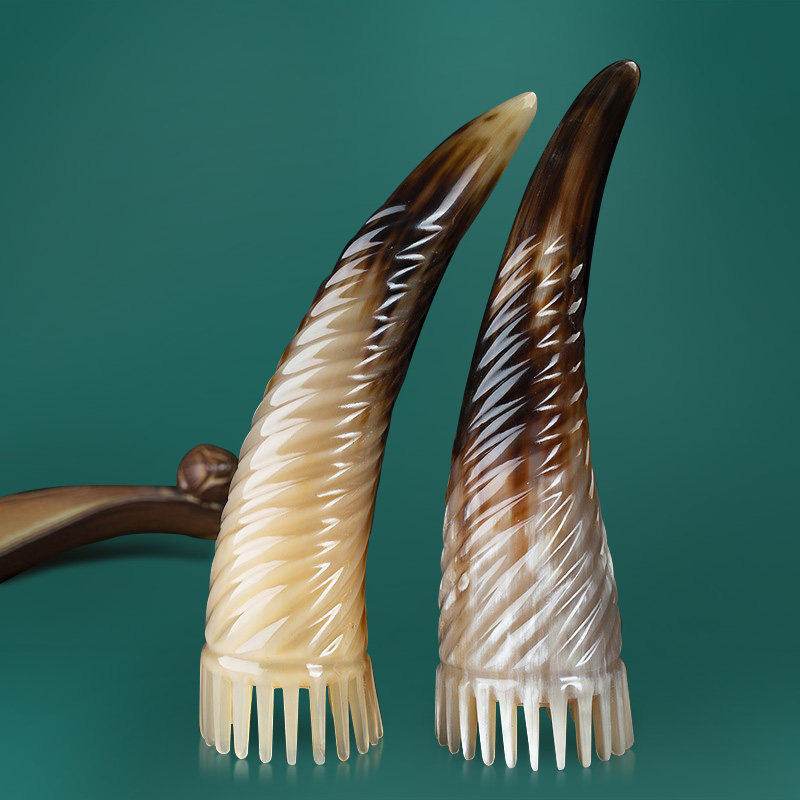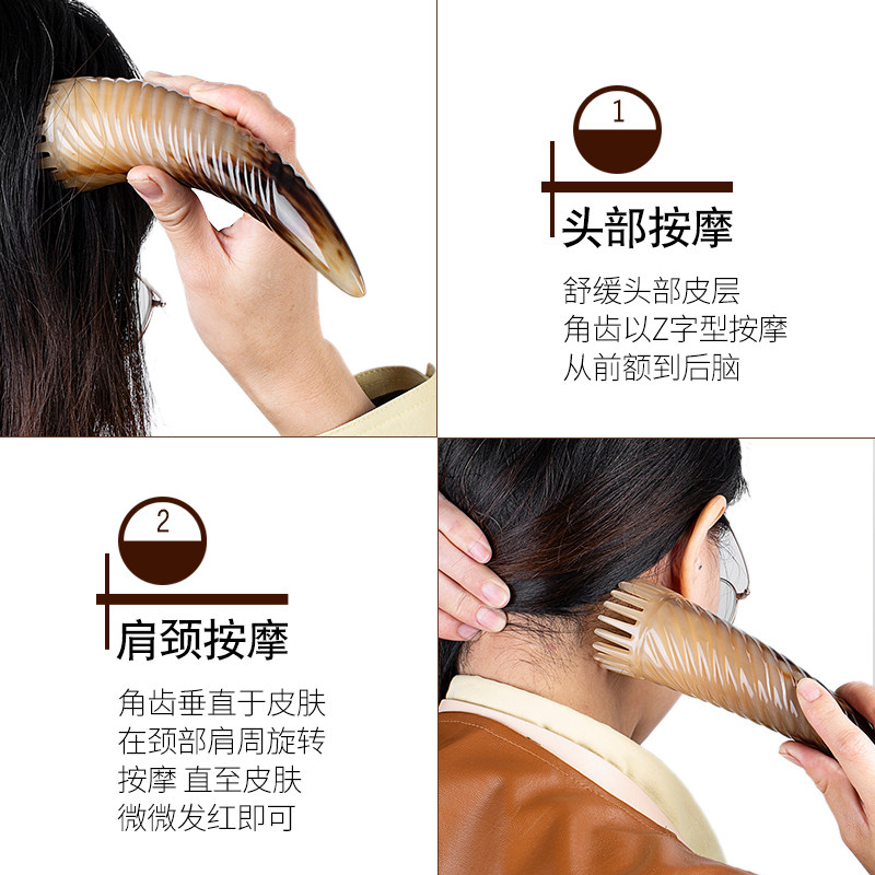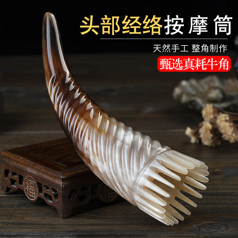 Natural Horn Comb Authentic Massage Comb Head Meridian Horn Tube Comb Genuine Head Therapy Household Flagship Store