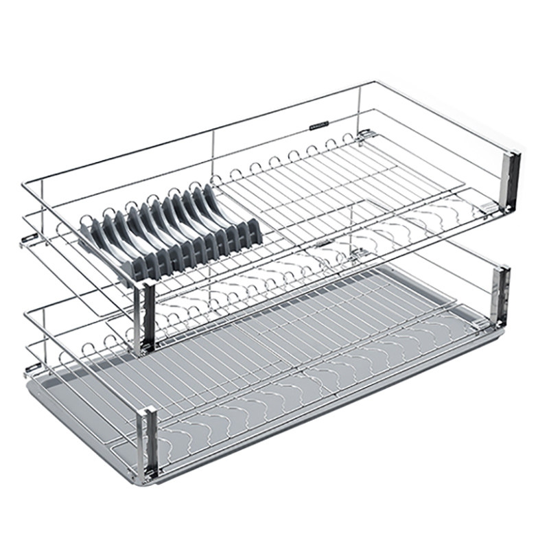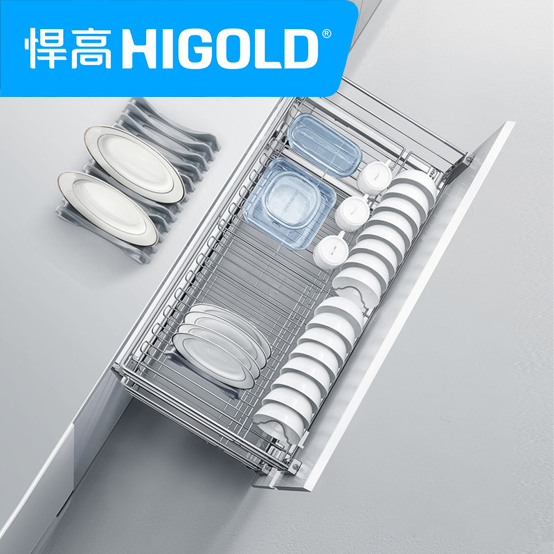 Higold Margaux kitchen cabinet pull basket drawer stainless steel seasoning dish rack double bowl basket damping sink