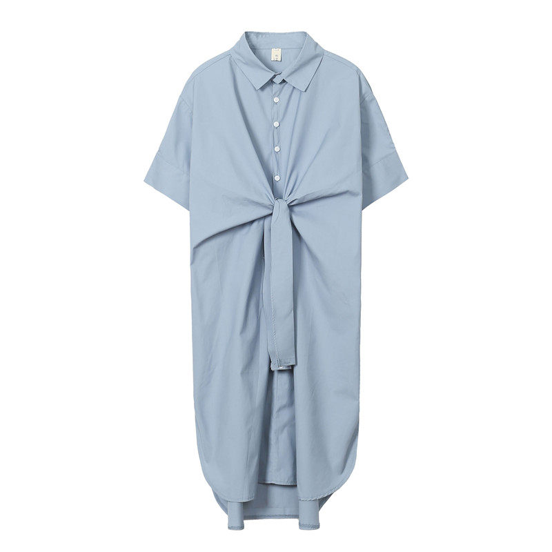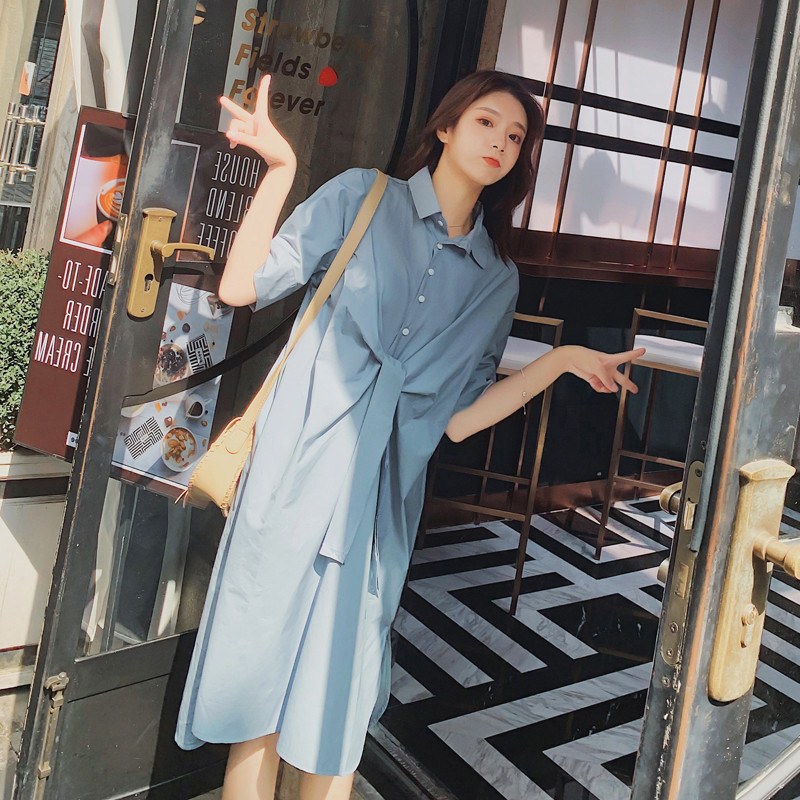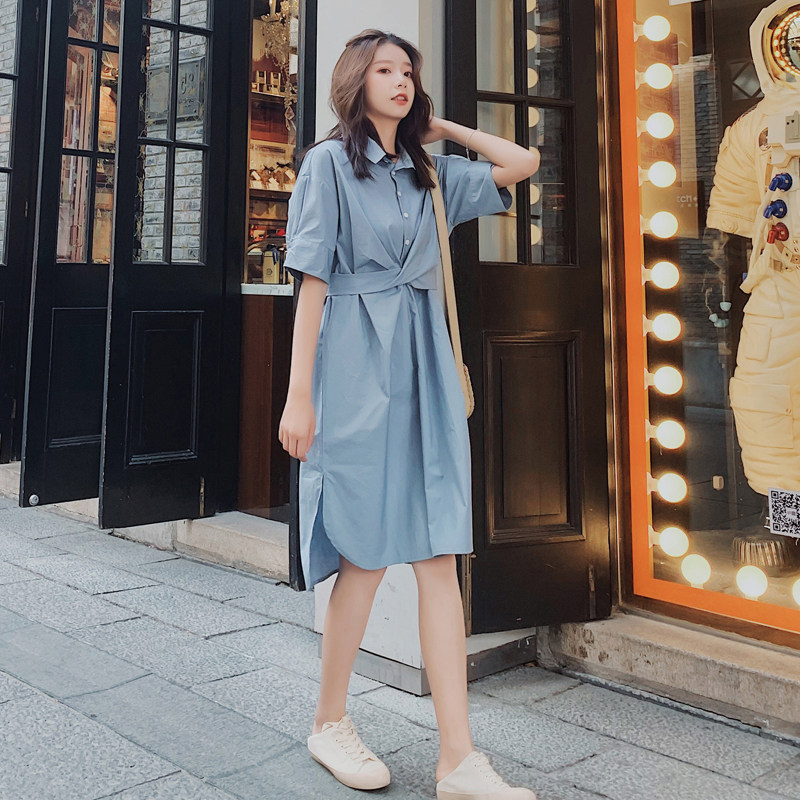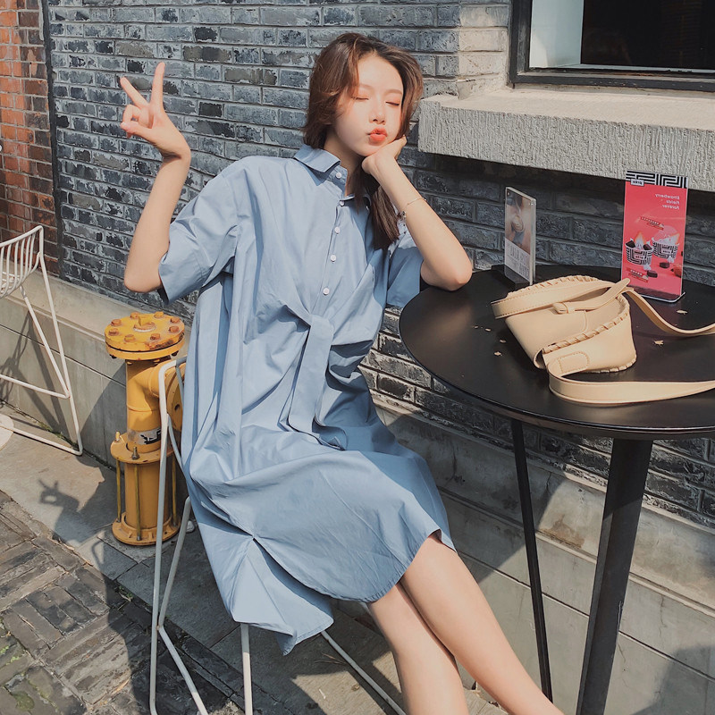 2021 Summer new large size women's dress Fat sister Shirt woman medium long version loose with knee short sleeve shirt Ocean dress