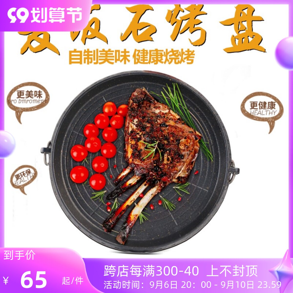 Korean barbecue pan Korean style baking pan smoke-free non-stick pan Home Outdoor portable round grill pan-style oven