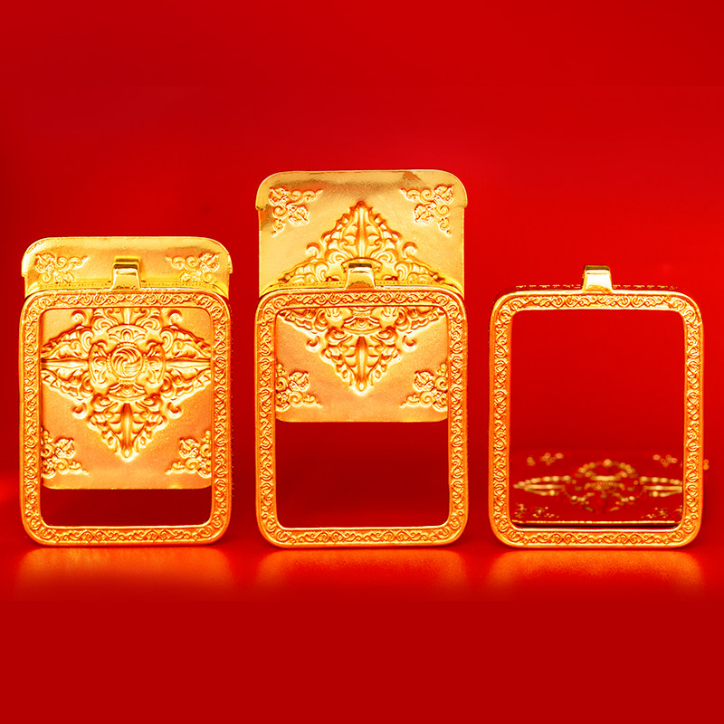 Pure copper hand painted Thangka box Golden Gawu box Gawu Box pendant Amulet pendant Buddha card Nepal jewelry