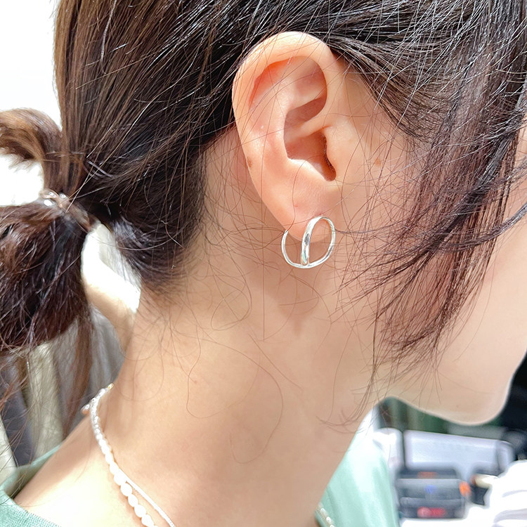 Chen Ji The same Korean version of the simplified version of the small crowd irregularly twisted round earrings woman 100 lap 925 silver ear nail 1020