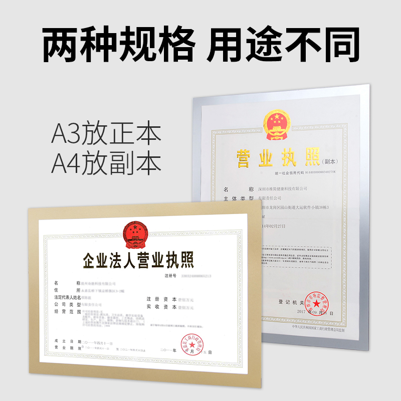 Industrial and commercial business license frame original protective cover attached to the wall sanitary food tobacco business license a4 certificate framework