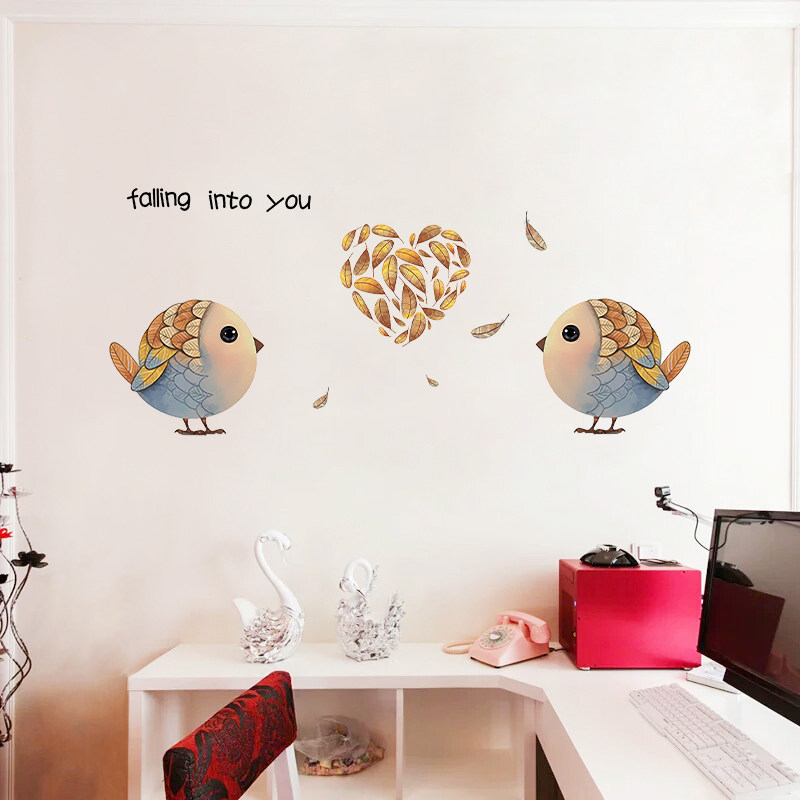 Romantic Minimalist Creative Animal Cute Little Bird Feather Nordic Wind Cozy Room Decorated Bedroom Bedside Wall Stickers