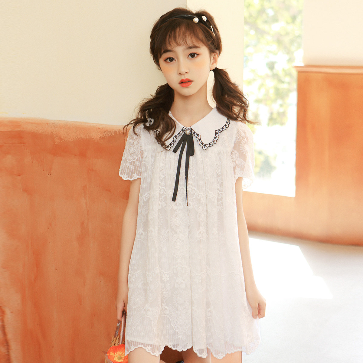 Girl Dress Summer Dress Summer Dress Princess Skirt Child Foreign Air Girl Great Boy Skirt White Short Sleeve Dress-Taobao
