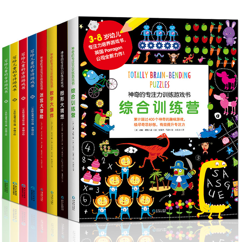 Full 8 volumes of amazing special attention game training book to children's ancient poetry game books 3-6-8 years old young children pre-school education children special training books children puzzle graphics books elementary school children's extracurrial reading