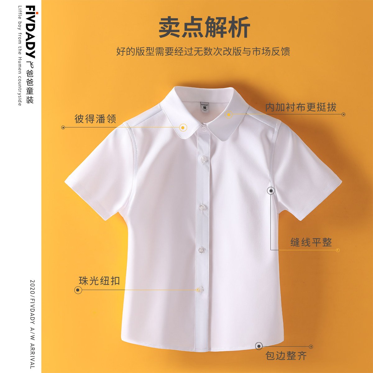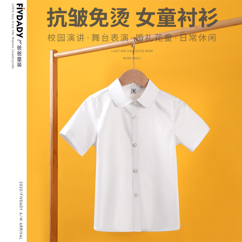 Girl White Shirt Summer Thin Princess Collar Children Pure White Short Sleeve Shirt CUHK Child Elementary School Uniforms Class Uniform