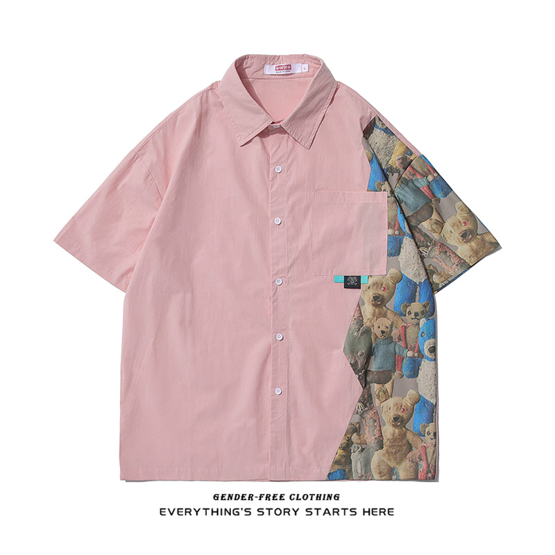 ZOROHOM Bohemian wind geometric splicing bear Design Summer Women Men loose short sleeve lining New