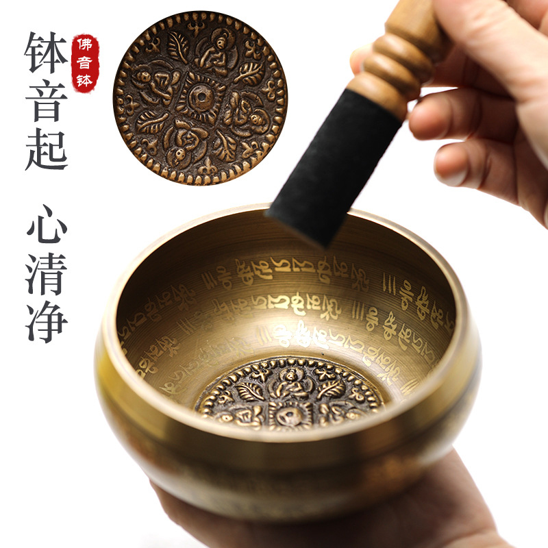 Nepal Artisanal Buddha Soundbowl Yoga Meditation Bowl Tibet Songpot bronze Bronze Sculpture 4 Buddhist Buddhist Buddha Soundbowl swing pieces
