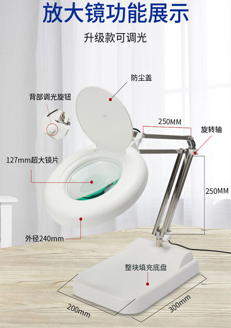 Table Clip Magnifier with 104 LED lamps 10 times 20 times HD Elderly Read engraving mobile phone repair Desktop
