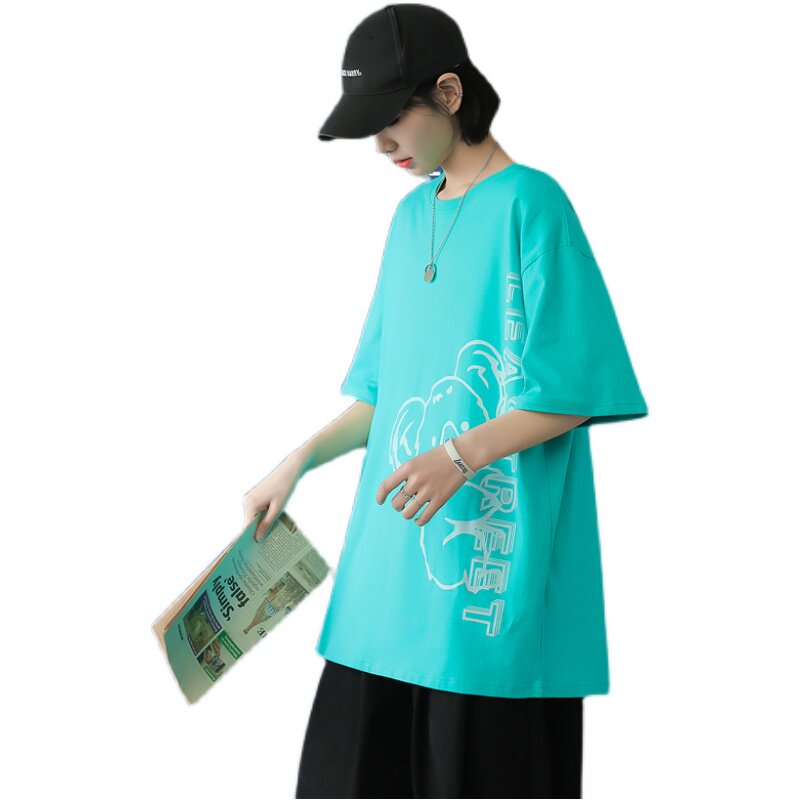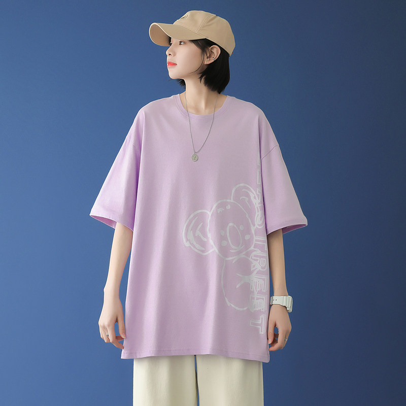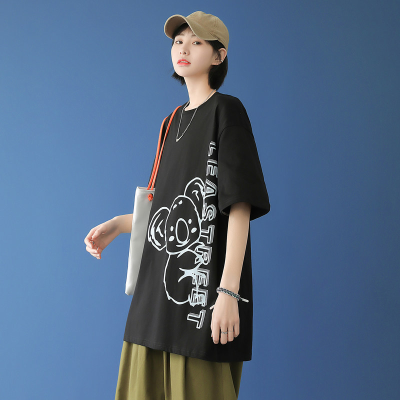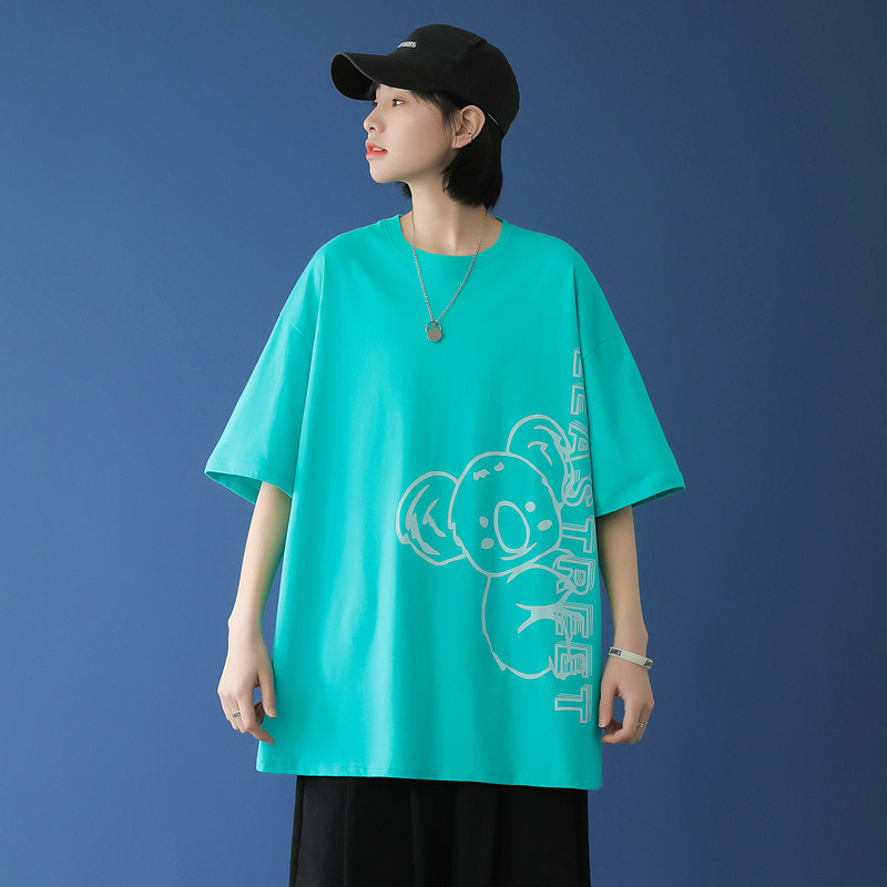 Black short - sleeved summer men loose 2021 new Korean bear printed tops fashion and blouse
