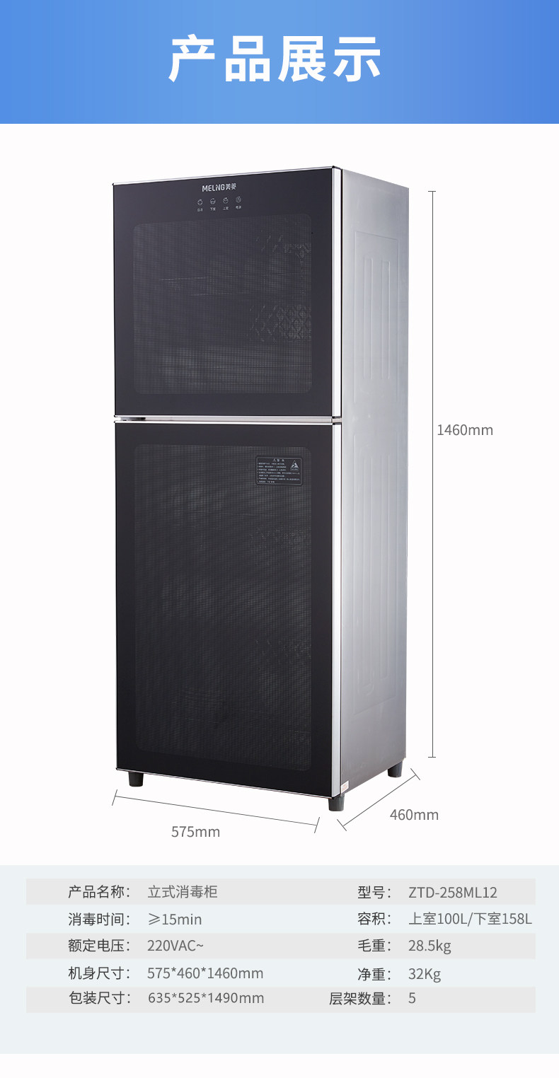 MeiLing Meiling ZTD-258ML12 vertical double door household kitchen large capacity tableware high temperature disinfection cabinet