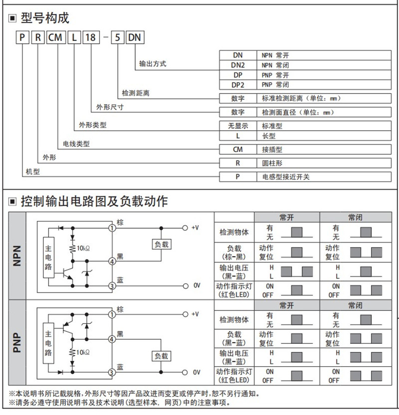 PRCM18-8DN NPN frequently open PRCM18-8DP PNP PNP frequently open PRCM18-8DN2 NPN is closed