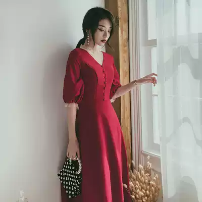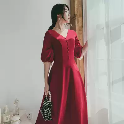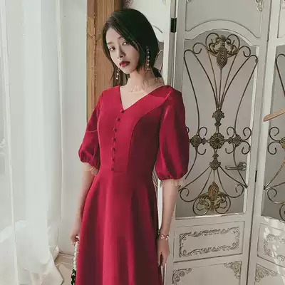 Toast clothes can usually wear 2021 new bridal wine red engagement dress return clothes simple and generous