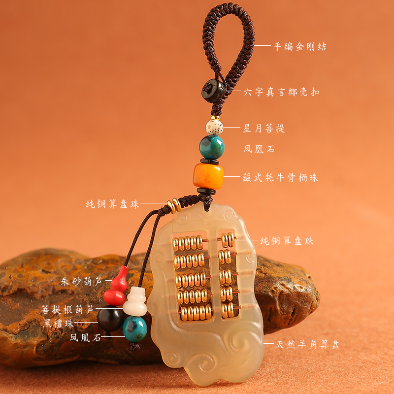Natural Bull Lamb Corner Abacus Car Key Clasp Pendant Accessories to High-end Men's And Women's Ring Rope Link Lovers Pendant Gift Fortune