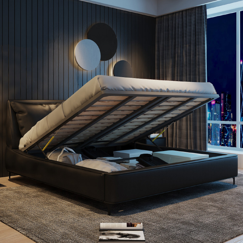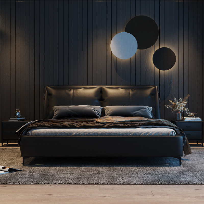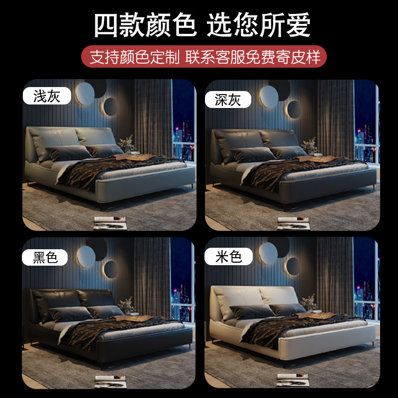 Italian bed Light luxury master bedroom Leather bed Nordic ins wind modern simple bedroom Wedding bed Soft bag double bed High-end