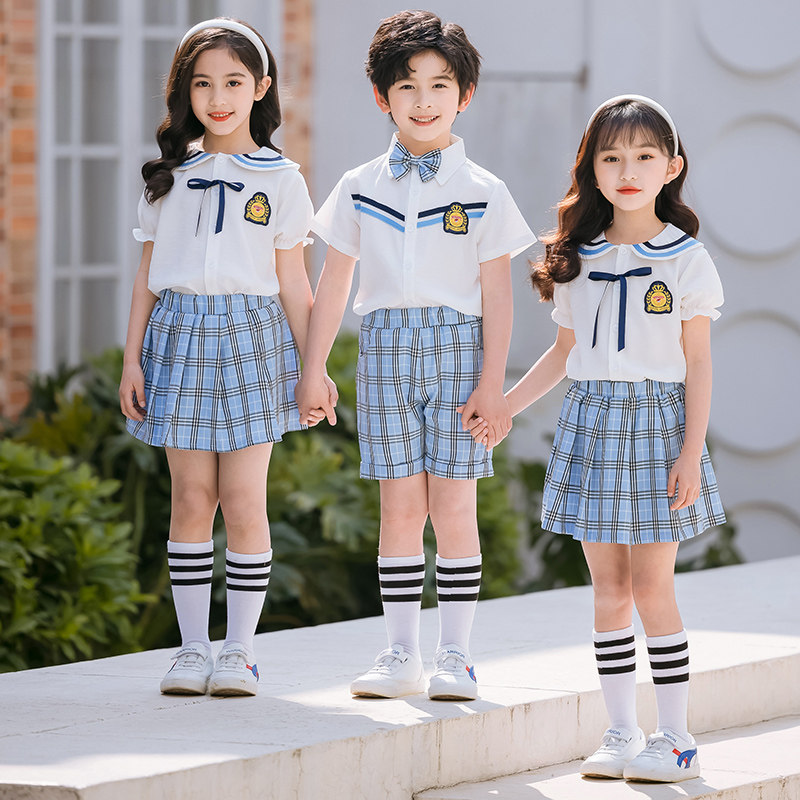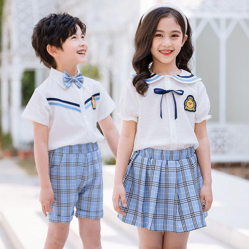 Kindergarten garden uniform summer clothes British style boys and girls class service graduation photo class service Korean version of primary school uniforms performance clothes