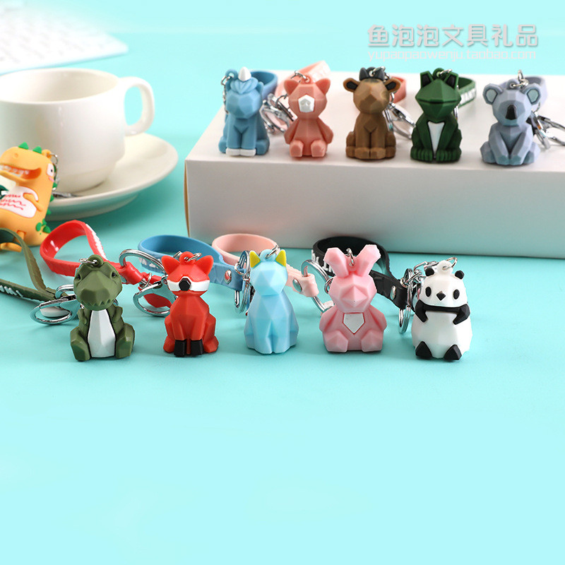 Creative Cartoon Geometric Section Dinosaur Car Key Button Flow Sand Pendant Solid bag hanging decoration birthday small gift