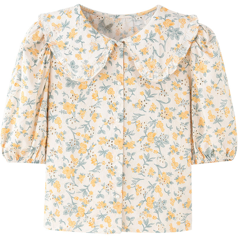 Doll Collar Bubble Cuff Blouse Women Design Sensation Small Crowdsummer Korean Ensemble Sweet Beauty Freshener Style Short Sleeve Crummy Shirt